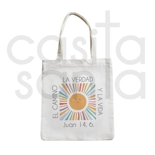 bolsa de manta con cita: “El camino la verdad y la vida” juan 14,6.