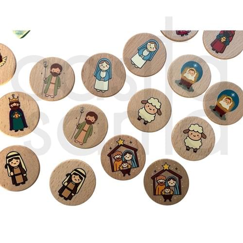 Memorama navideño con ilustraciones del nacimiento de Jesús, ideal para vivir esta temporada con alegría y fe en familia.